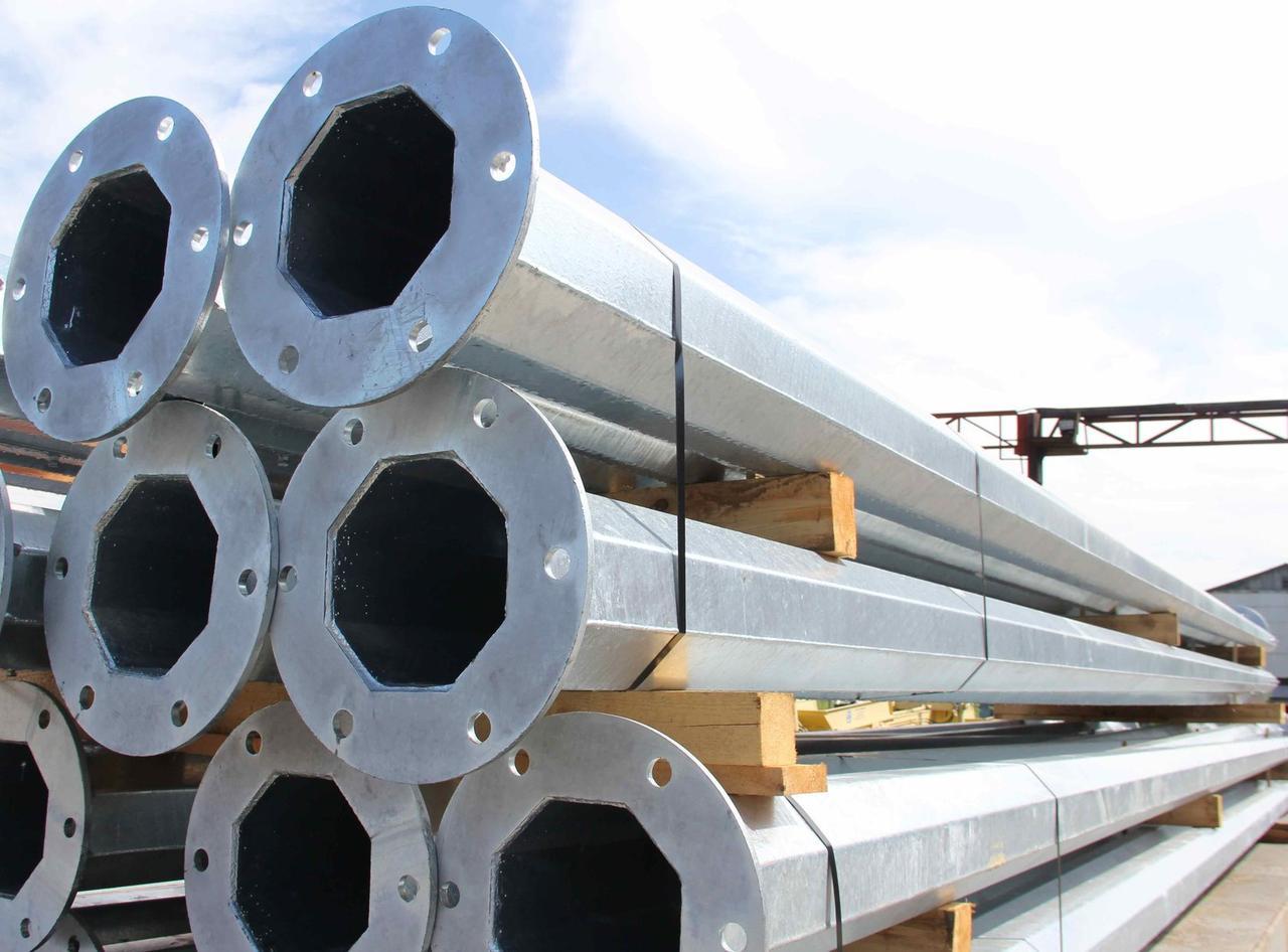 Многогранные опоры. В этой категории выпускаются силовые и не силовые фланцевые и прямостоечные конструкции. Также к этому типу относятся высоко мачтовые опоры. Восьмигранная форма ствола обеспечивает оптимальное распределение нагрузки, а эстетичность опор этого. типа позволяет применять их практически повсеместно